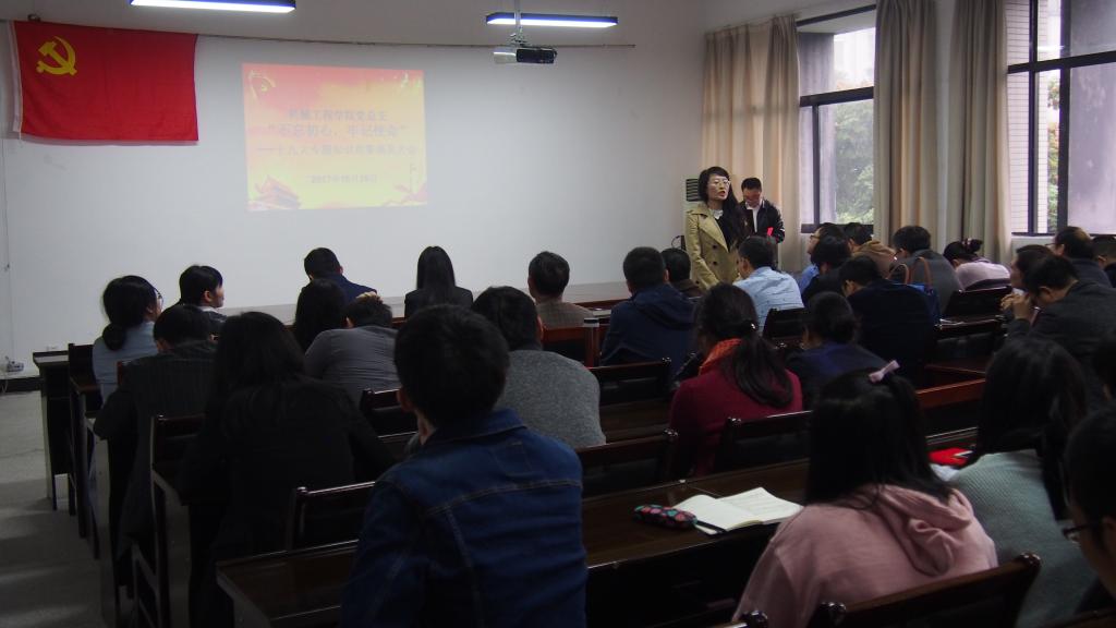 为进一步学习贯彻十九大精神,365bet国际赌场党总支在组织聆听报告基础上,积极创新形式,开展“不忘初心 牢记使命”十九大专题知识竞赛、“献礼十九大·奖先评优树标杆”年度党建工作表彰大会、“献礼十九大·对党说说心里话” 、“青春献礼十九大·奋斗铸就中国梦”等系列活动,形成一股深入学习贯彻党的十九大精神的热潮。